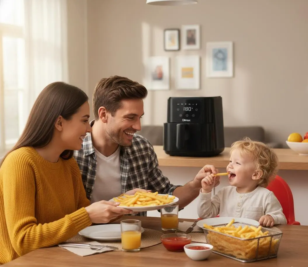 Capacidad y versatilidad: 7 litros alcanza para familias medianas o comidas grupales, y podés freír, asar u hornear sin necesidad de múltiples aparatos.